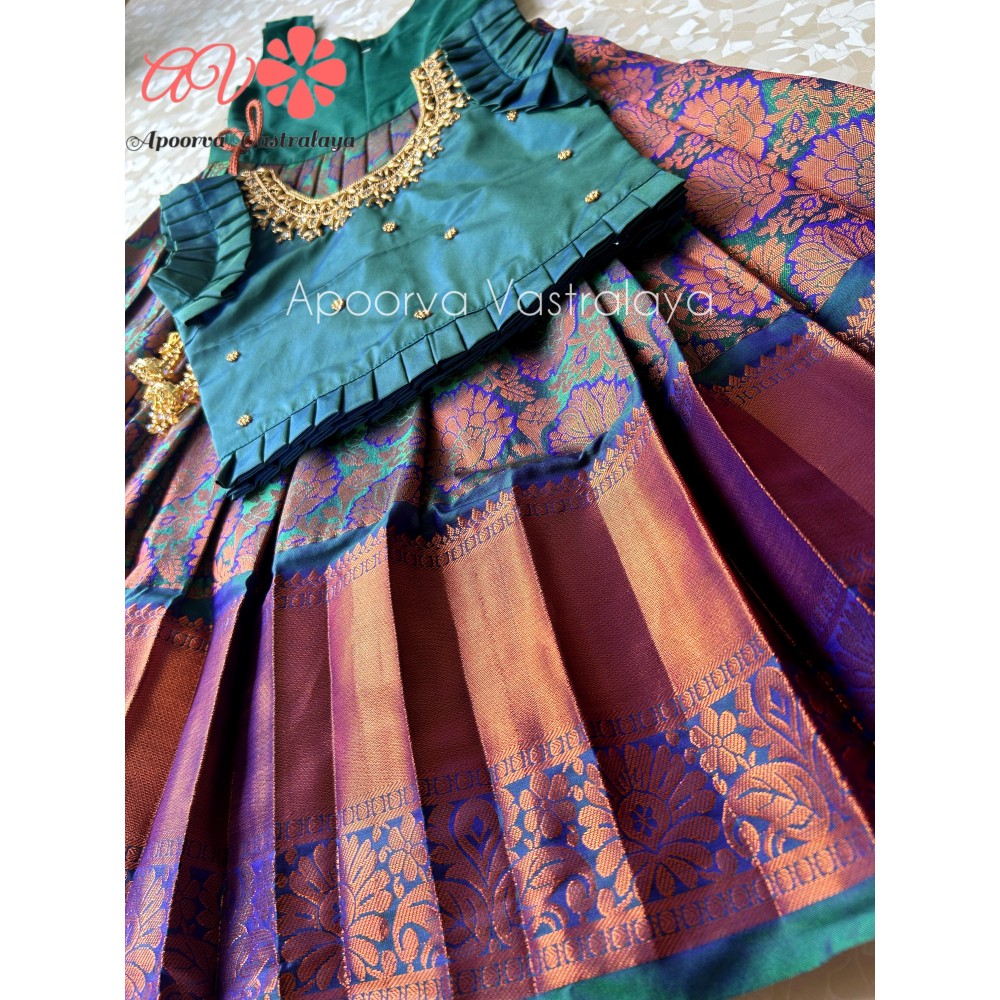 Peacock green & blue aari pattu pavadai