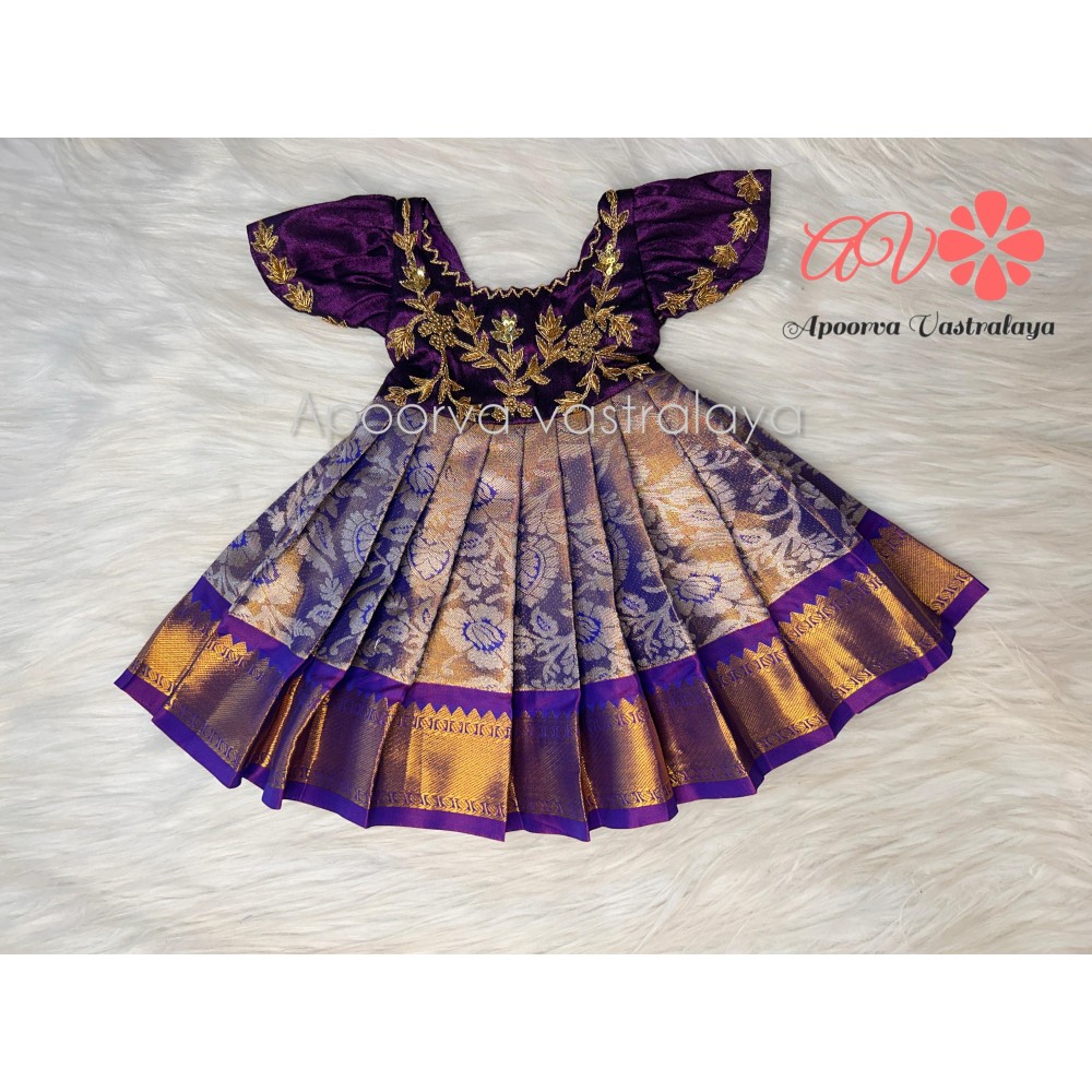 Peach and Purple Heavy Aari Pattu Pavadai