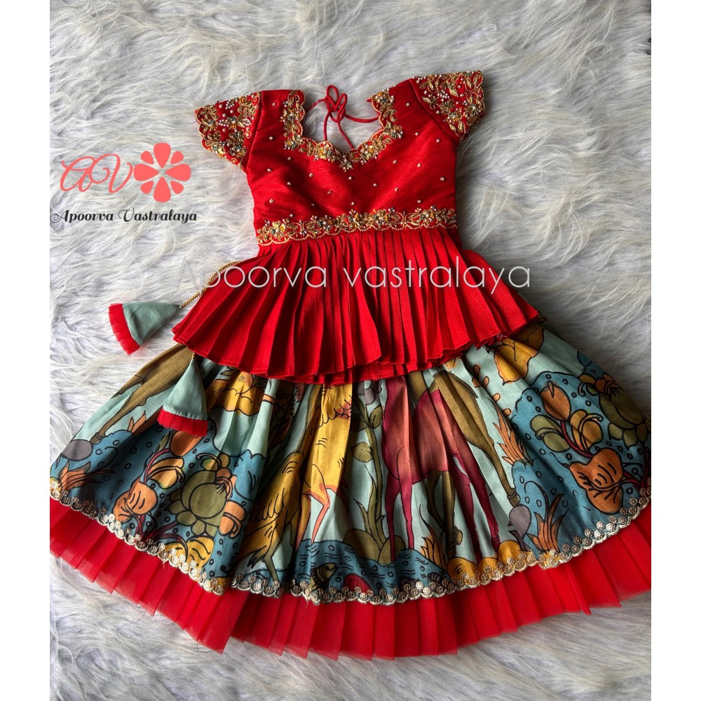 Red & Blue Luxury Pichwari Silk Lehenga