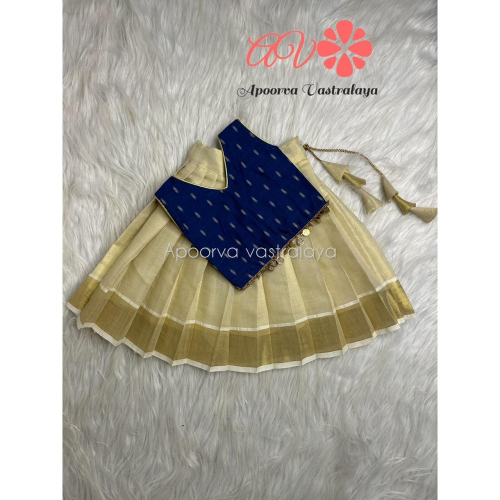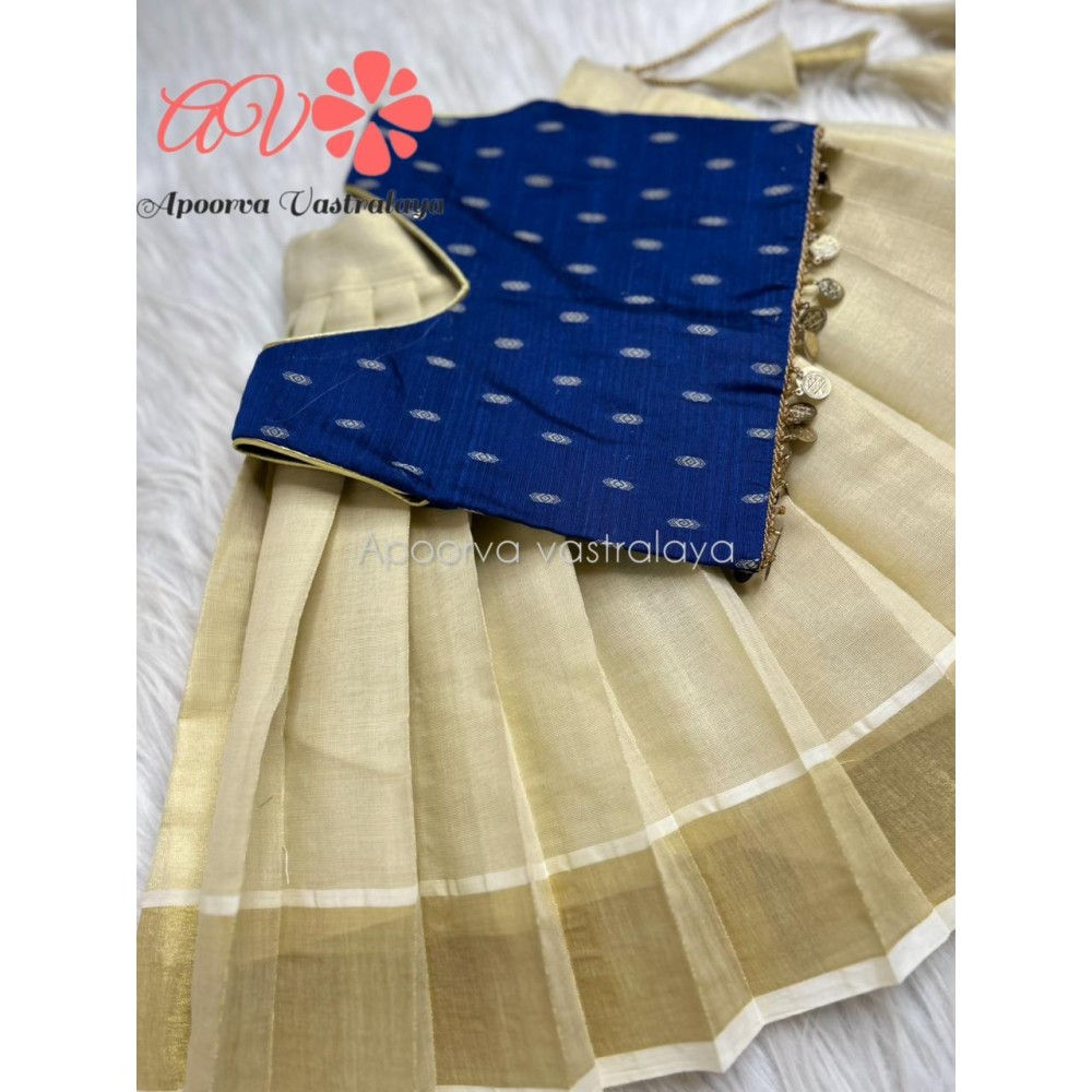 Royal Blue & Offwhite Kerala Kasavu Pattu Pavadai