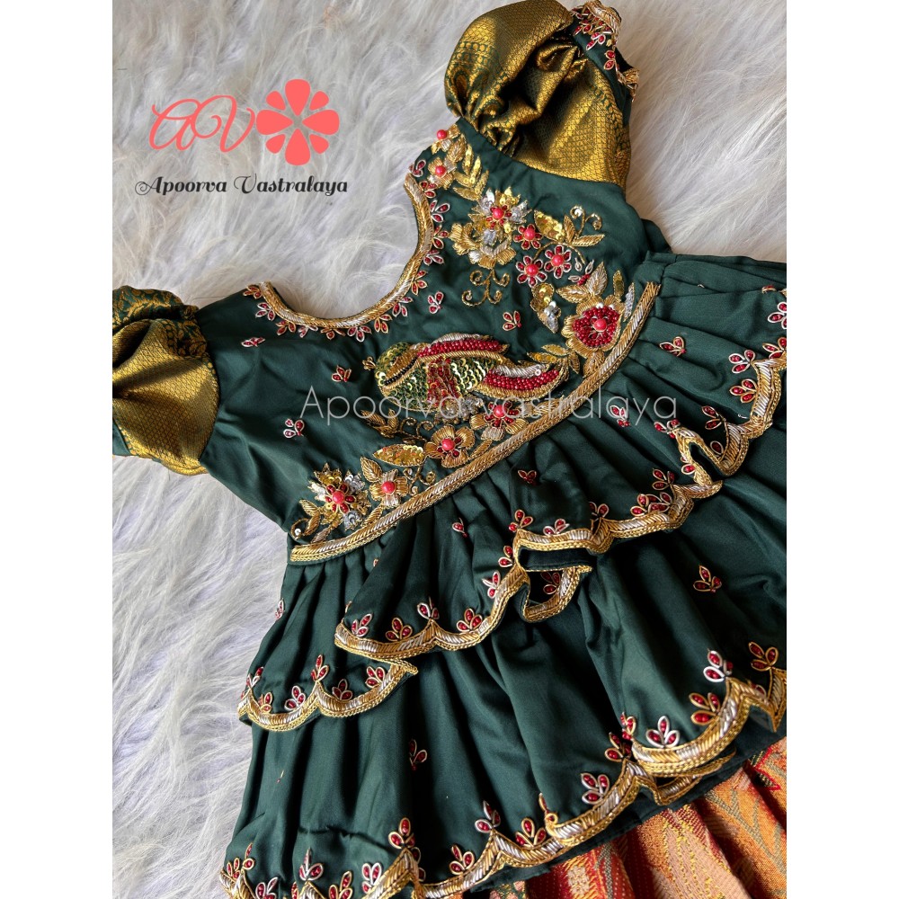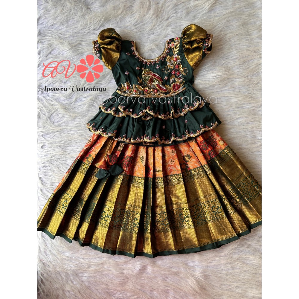 Orange & Green Luxury Parrot Aari pattu pavadai